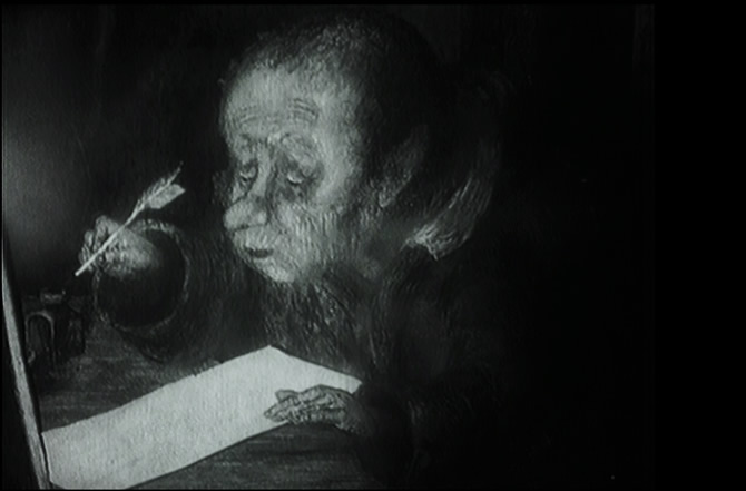 制作が止まっている理由を問われ、訥々と語るノルシュテイン氏の姿をカメラは捉え、彼の苦悩と情熱、哲学を映し出す。なお、本編では断片的に発表されている『外套』の一部も見ることができる。その緻密さには目を奪われること間違いない。