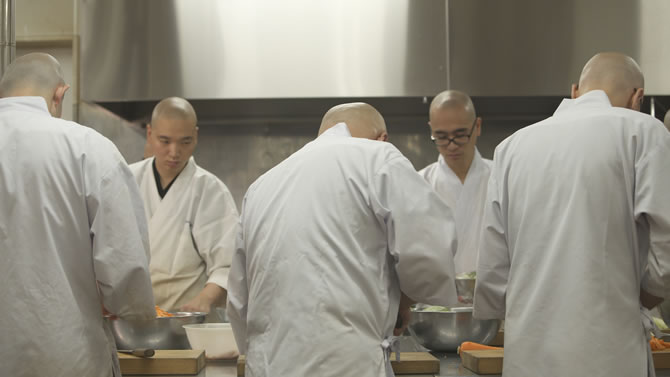 本作のタイトルでもある「典座」は、道元禅師が遺した「典座教訓」から採られているが、それは台所のお当番の心得を書き記したもの。その他、食べる方に回った時の心構え、顔の洗い方から、お手洗いでの用の足し方など、すべてが修行であると道元様は仰っていると青山老師は述べる。