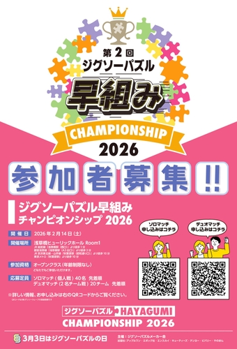 3月3日はジグソーパズルの日!国内ジグソーパズルメーカー7社で運営する「ジグソーパズルメーカー会」にて記念日登録しております。2025年に初開催し、白熱の大会となった【ジグソーパズルメーカー会公式大会】の第2回を開催いたします!