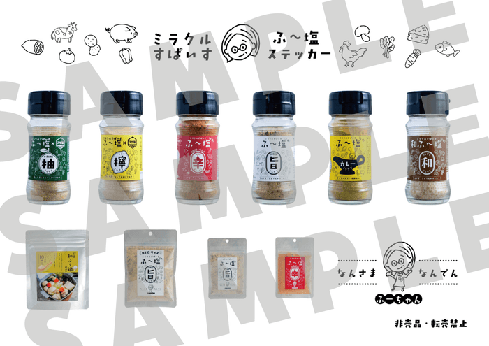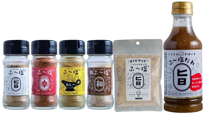 日頃の感謝を込めて、会場では「ミラクルすぱいす ふ~塩」各種を感謝祭限定価格でご提供いたします。人気の瓶タイプ全4種(旨・辛・和・カレー)および「ふ~塩だれ」は、通常価格540円のところ、300円(税込)。また、たっぷり使える大袋タイプの「ふ~塩 旨ミックス 100g」も、通常価格900円から500円(税込)へと大幅にお得な価格でご用意しました。この機会にぜひお買い求めください。