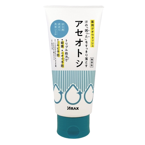 生理痛薬 『ノーシンピュア』や花粉用マスク『PITTA MASK』などを販売する株式会社アラクス(愛知県名古屋市中区、代表取締役社長:荒川愼太郎)は、汗悩みに有効な3つの成分を効果的に配合した薬用デオウォッシュ『アセオトシ』を、2026年1月14日(水)に新発売いたします。
